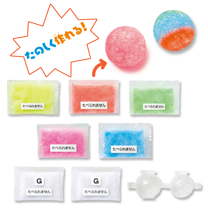 こどもが大好きな、投げるとはずむボールを自宅で簡単に作れるキットです。単色やミックスカラーのボールが計7個作れます。しかも、暗いところで光るボールを作ることも可能!夏休みの自由研究にも生かせる、書きこみ式の実験記録シート付き。