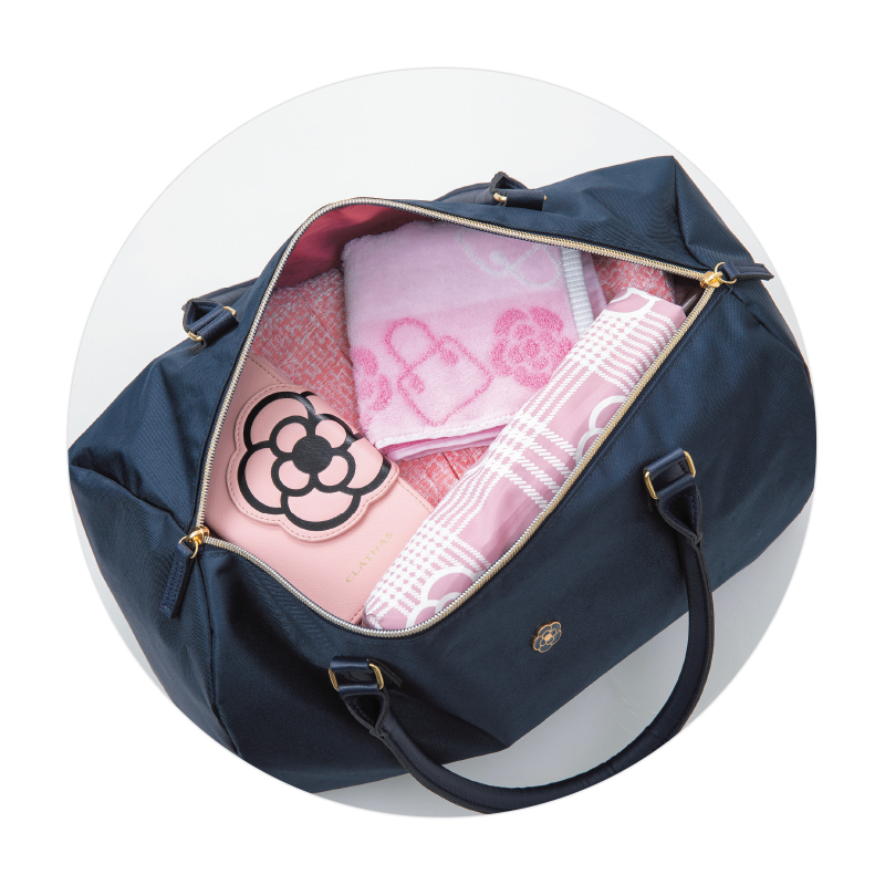 大人気ブランド「クレイサス」から、今年もスペシャルバッグが登場です!今回のバッグは、ビッグサイズのボストンバッグ。カラーは高級感のあるネイビー。どんなコーディネートにも合わせやすく、汚れが目立ちにくいのも嬉しい。クレイサスを象徴するカメリアモチーフのアイコンや、持ち手の合皮素材は、高見え間違いなし。2泊3日の旅行荷物がすっぽり入るサイズで安心です。旅行にぴったりなボストンバッグをぜひお見逃しなく。