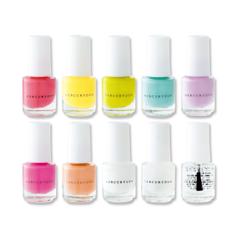 スイーツみたいな可愛いネイルが簡単にできちゃう!マカロンカラー8色に、ツヤあり、マットのトップコート2種付き!紗栄子さんも通う大人気ネイルサロン「esネイル」の山崎さんが、MERCURYDUOの可愛いスタイルにぴったりなネイルアートをたくさん教えてくれました。トップコートの使い分けや、バイカラー、フレンチなど誰でも簡単にできてインスタ映えするデザインばかり!今すぐ sweetな世界に指先からトリップ☆
