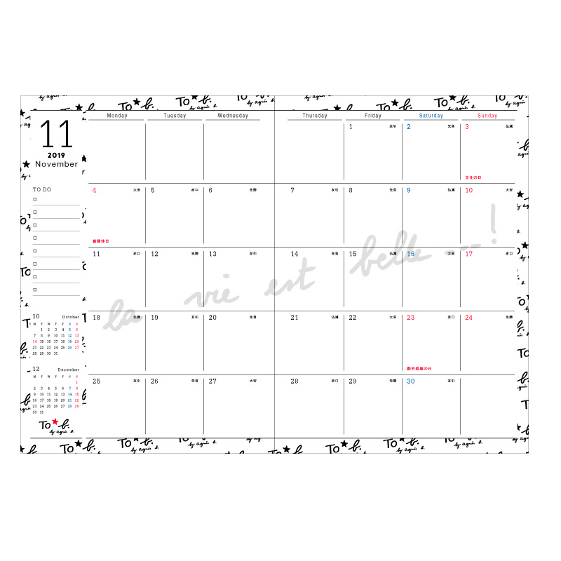 【マンスリータイプ】 To b. by agnes b. DIARY 2019