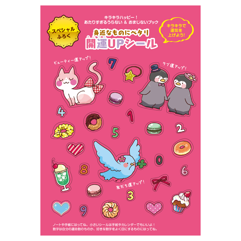 みんなの隠れた性格や友情、恋愛がなんでもわかるうらないがいっぱい!人気の血液型うらない、星座占いはもちろん、手相、前世、夢うらないなどたくさん楽しめます。運命を動かす!開運シール付き。