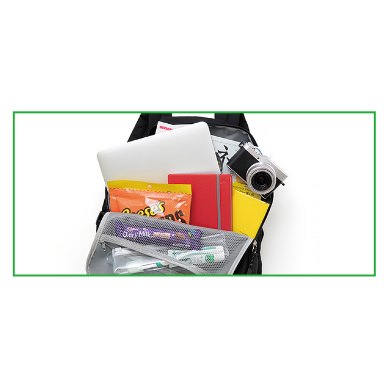 (3)中に入れたものをすぐに確認できる内側の“メッシュポケット”