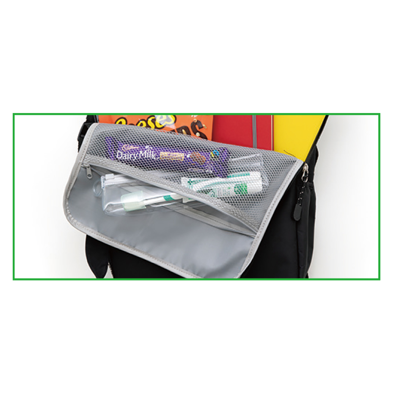 └整理整頓に便利なメッシュポケット。何が入っているかすぐにわかります