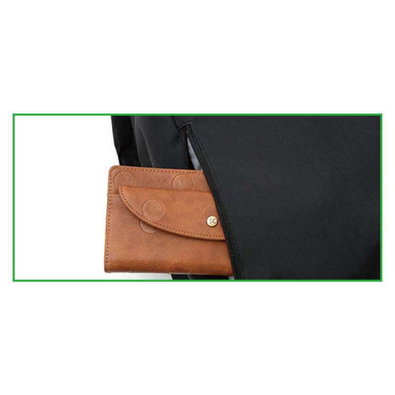 └スマホや定期券の収納にぴったりなフロントポケット。深めなので安心感も◎