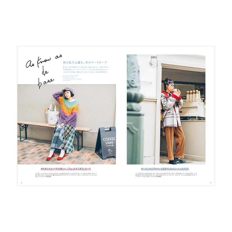 かわいらしさの中にちょっぴり大人な雰囲気を漂わせたブランド、「as know as de base(アズノゥアズ ドゥ バズ)」からはじめてのオフィシャルブックが誕生しました!本誌限定のスペシャルアイテムは、両サイドについたメタリックシルバーのポケットが特徴のグロッサリーバッグです。丸底なので安定感があり、スナップボタンもついているので中身が丸見えになることもありません。野菜やパンなど長いものを立てて入れられるのでお買いものにぴったりな設計で、インテリアバスケットにするのも◎。誌面では、Kanocoさんが最新コレクションを着こなし、秋冬のコーディネートをいち早くお届けします。ぜひお手にとってみてください。