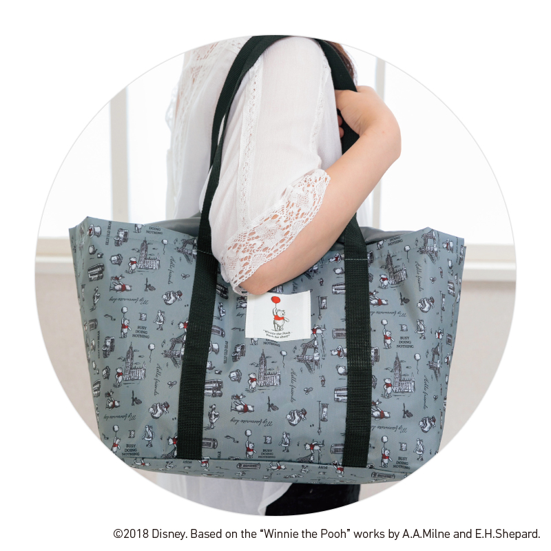 2018年9月公開の実写映画が話題の『くまのプーさん』のレジカゴバッグができました!毎日のお買い物で大活躍すること間違いなしな、たっぷり大容量のレジカゴバッグは、レジカゴに入れて使えるサイズなのでお買い物の詰め替えも不要! また巾着ぶたが付いているので、中身が見えないのも◎。コンパクトに折りたたむことができるので、バッグに入れて持ち運びもラクラク。肩に掛けられる持ち手も便利です。プーさんがイギリス・ロンドンにいるクラシカルな雰囲気のアートを総柄でプリント。まるでプーさんが旅をしているような、ファンにはたまらない貴重なアートをあしらいました。さらに中央には、おなじみの赤い風船を持ったプーさんのイラストタグをオン。どんなコーデにも合わせやすく、汚れが目立ちにくいグレーカラーで上品に仕上げました。誌面には、映画『プーと大人になった僕』の貴重なアートや情報も収録。スケッチアート満載な一冊を見逃さないで。
