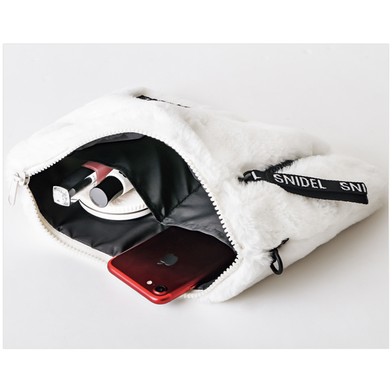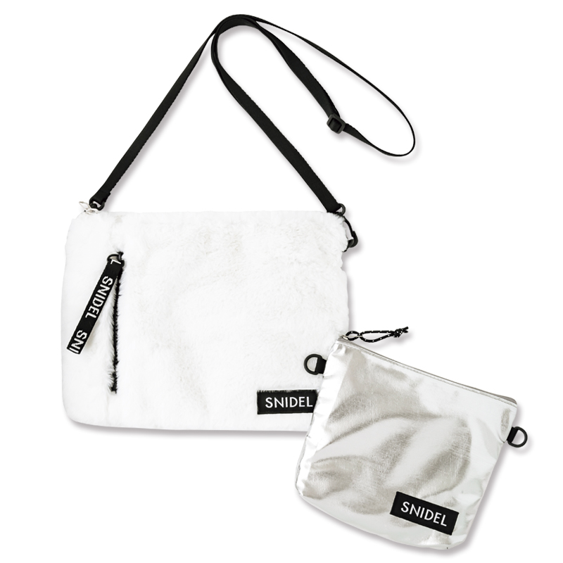 本誌では、この秋ロゴがリニューアルする「SNIDEL」の新作コレクションをいち早くお届け。特別付録は、ファー素材のふわもこサコッシュ&シルバーポーチの豪華2点セット。シルバーポーチは、ショルダーストラップを付ければ、ミニサコッシュとしても持てる便利なデザインです。秋冬のコーディネートを旬顔に仕上げてくれる優秀アイテムを堪能して。