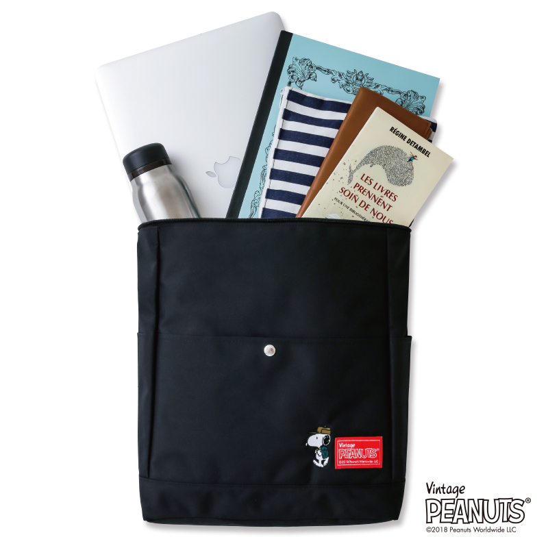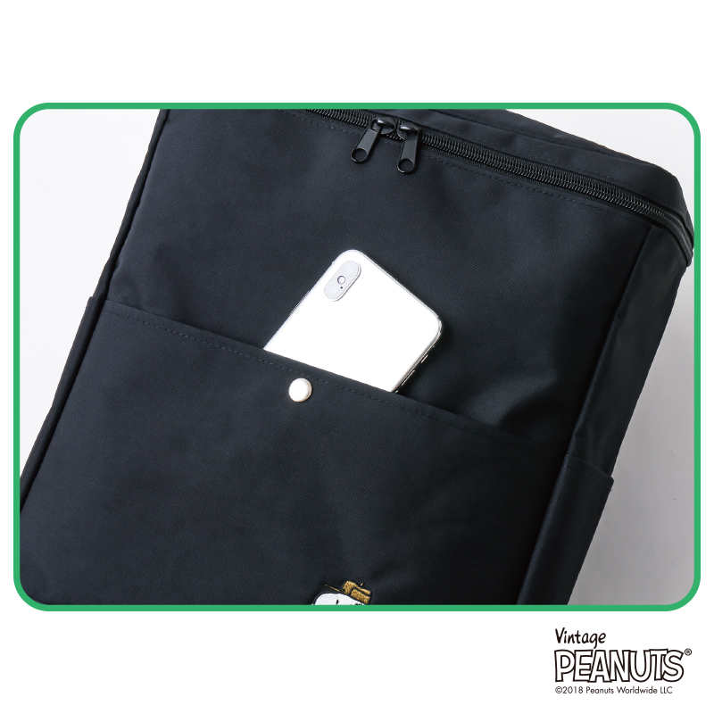 荷物を整理しやすく、日常での使用に最適なボックス型のデイパック付きブックが登場!バックパックを背負ったスヌーピーの刺しゅうがポイントです!違和感なくタウンユースできるデザインに仕上がっています。背負い心地のよい、立体的で安定感のある四角い形状。PCや書類、タブレットなどを迷うことなく整理することが可能です。サイドとフロントのポケットにはカードケースやスマートフォン、ペットボトルなどをスマートに収納可能です。