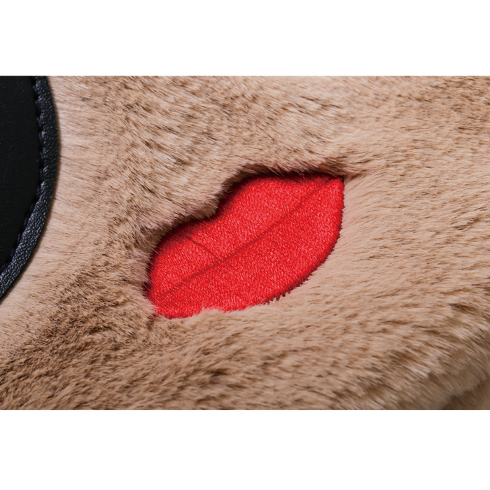 手触りの良いエコファーにレザーと刺しゅうであしらったサングラスフェイスをオン。