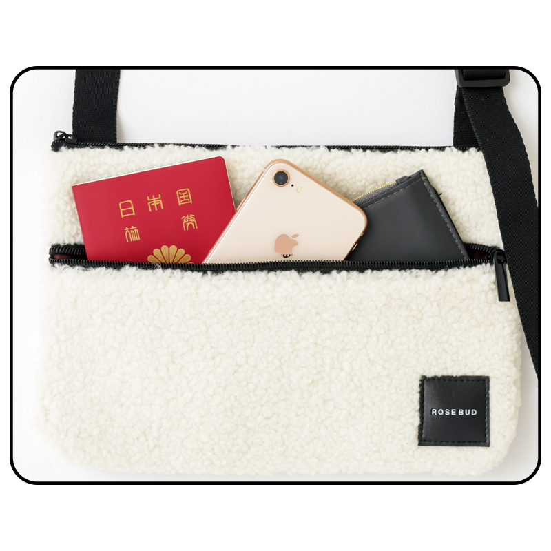 豊富なカラーファブリックを使用したウェアを展開しつつ、世界中からセレクトしたインポートアイテムを取り扱う、お洒落に敏感な女性から圧倒的支持を得ている「ROSE BUD(ローズバッド)」から、初のアイテムつきBOOKが登場です。気になるアイテムは、もこもこホワイトのボアがかわいいショルダーバッグ。メイン収納部には便利な内ポケットが2つついているので、バッグの中で物を見失う心配がありません。外側にフロントポケットがある仕様なのも◎。フロントポケット内部には、カラビナ式キーリングが付属していて、パスケースなどをつけられて便利。秋冬に活躍すること間違いなしの、人気のショルダーバッグをぜひ手に入れて。