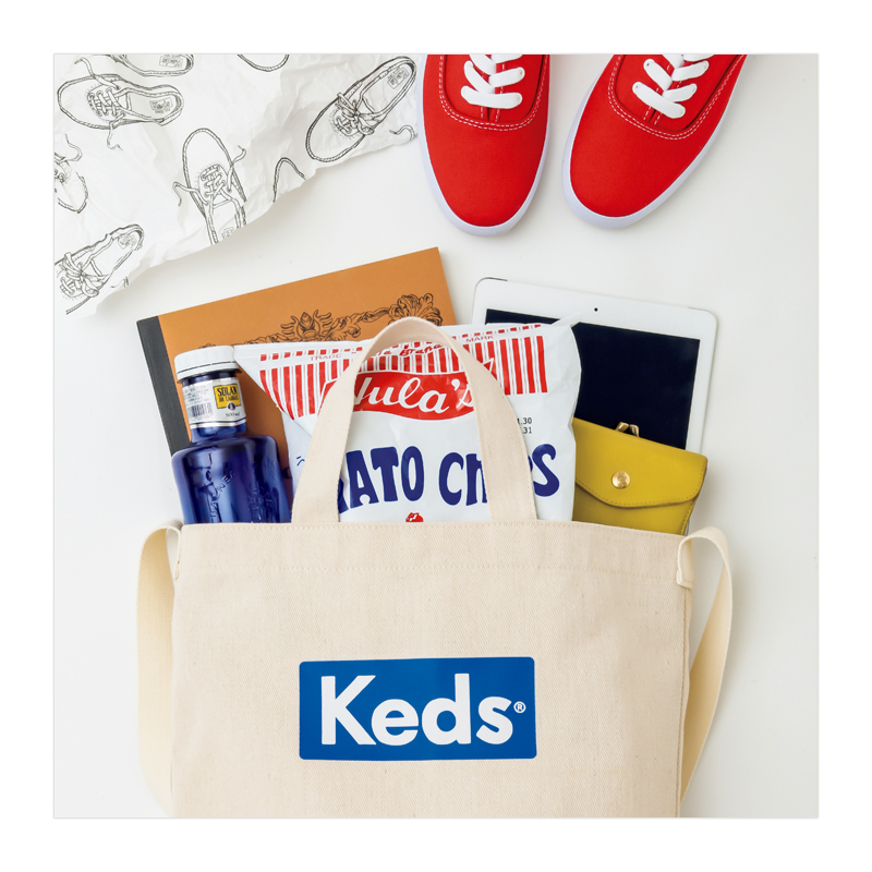USAスニーカーブランド「ケッズ」から初のブランドムックが登場!表紙を飾ってくれたのは、2018年7月期のドラマ『この世界の片隅に』(TBS)で主演を務めた、今注目の若手女優・松本穂香さん。本誌でも、大人カジュアルな装いで“ケッズ”のスニーカースタイルをたっぷりとお届けします。特別付録は、青のボックスロゴが新鮮で可愛い!2WAYキャンバストートバッグです。B4サイズもすっぽり入り、マチは約12cmと大容量!行楽シーズン、何かと便利なビッグサイズのトートバッグです。