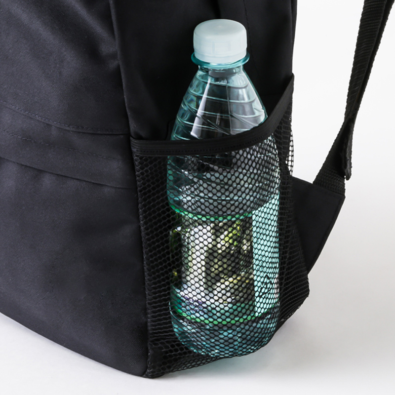 約20Lと大容量のバックパックは、ノートや大きめポーチ、スウェットも余裕で入っちゃう、安心の収納力! 小旅行や通学にも◎。メイン収納のほか、フロント部分には2つのファスナー付きポケット、両サイドにはメッシュポケット付きと、“ごちゃつく”というバックパックの課題をクリア。