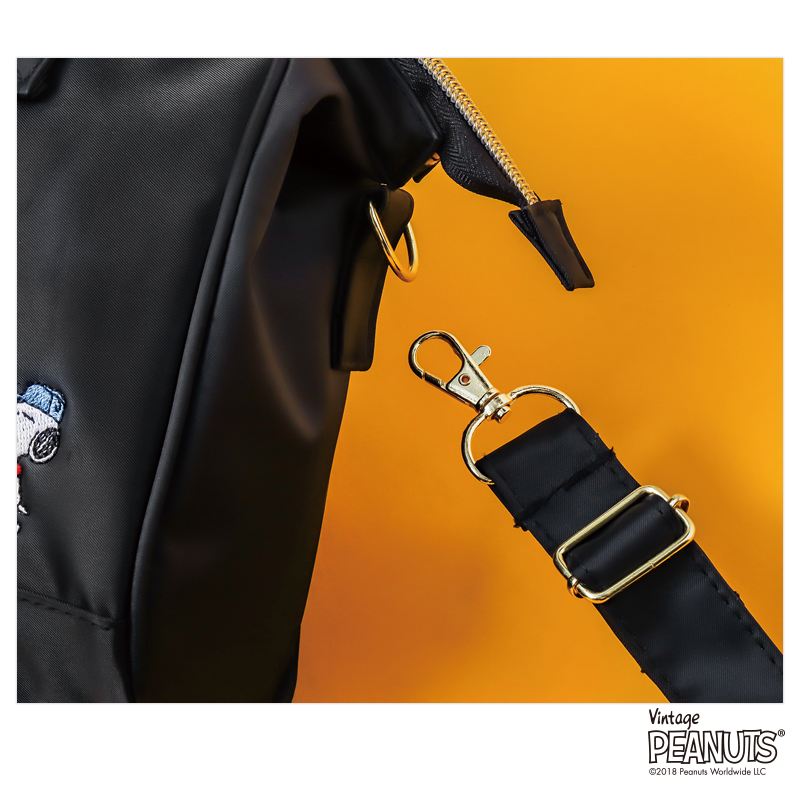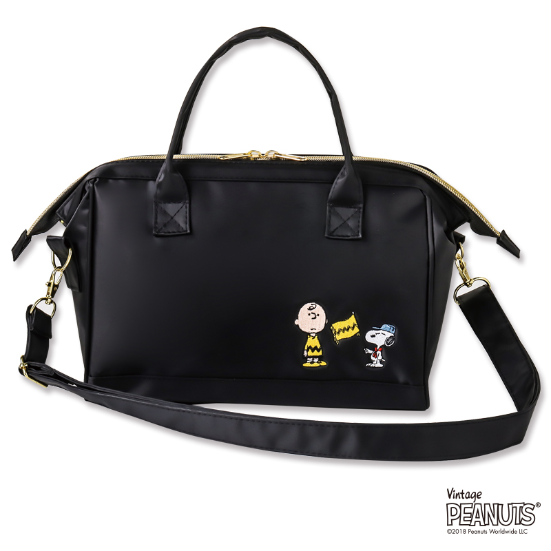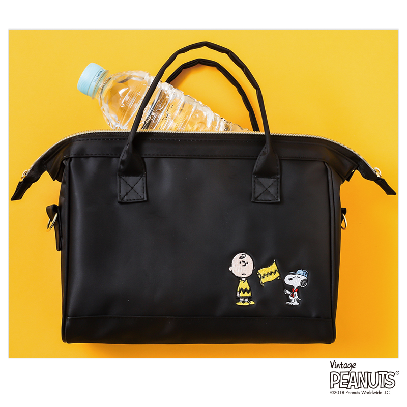 スヌーピーとチャーリー・ブラウンの刺しゅうがポイントの、口が大きく開くショルダーバッグが完成しました。バッグの開口部はガバッと開く口金入りなので、中身がひと目でわかりやすく、出し入れもラクラク!長財布や500mLのペットボトルがすっぽり収納できて、外出にうれしいサイズです。スヌーピーとチャーリー・ブラウンの刺しゅうがポイントで入ったシンプルなフロントデザインで、コーディネートを選びません。裏地はかわいらしいウッドストックたちがたくさんいる明るいデザインで、バッグの中身が見やすいのもポイント。ショルダーストラップは取り外しが可能なので、気分やコーディネートに合わせてハンドバッグとしても使える2WAY仕様です。