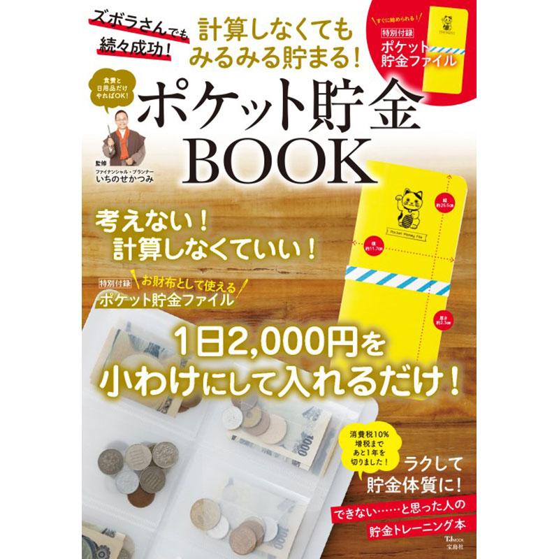 数字、計算に弱く、家計簿をつけることに挫折した人や、何に使っているかわからないけどお金が貯まらない人ほど成功できるポケットファイル貯金術を紹介。1日の予算2000円をあらかじめポケットファイルに振り分けておくことで、一番無駄遣いしやすい食費、日用品代が劇的に節約でき、知らぬ間に貯金体質になれる一冊です。付録は、お財布として使えるポケット貯金ファイル!
