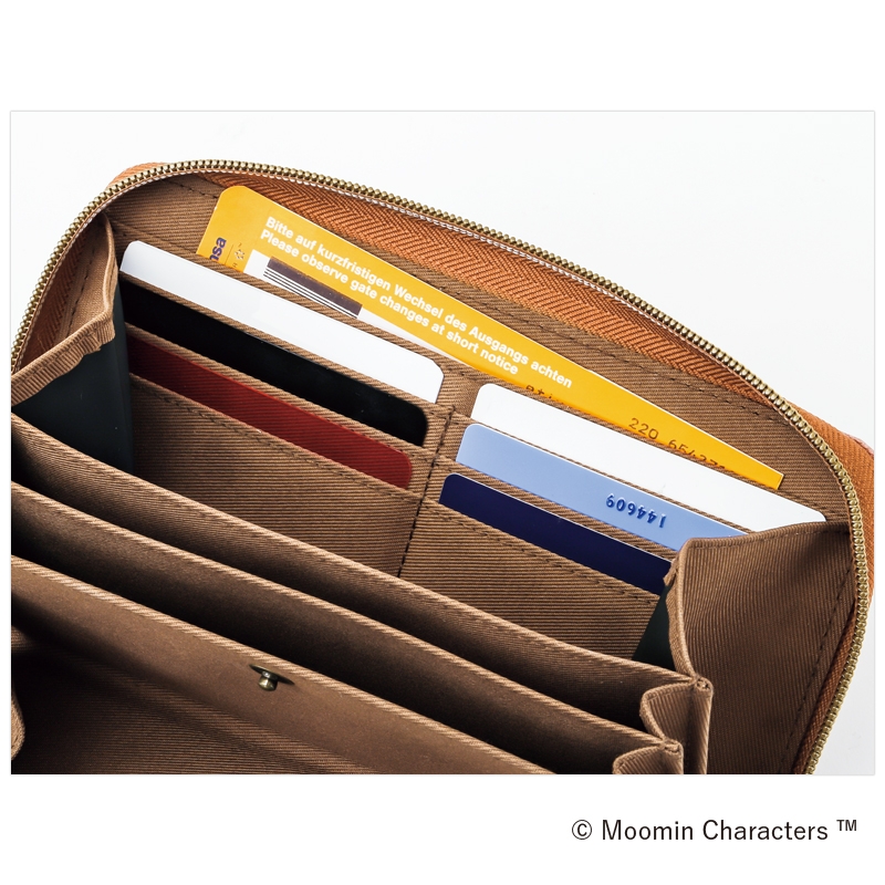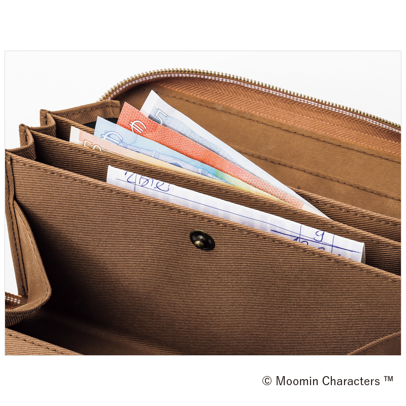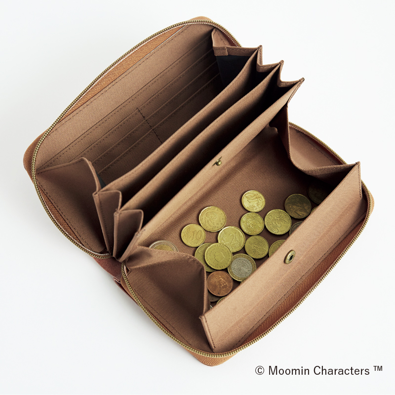 大好評のムーミン本革シリーズに、リトルミイの型押しが可愛い新作長財布が登場! 高級感のある本格レザーに、アンティークゴールドの金具が大人の女性にぴったりの仕上がり。おしゃれなレター型の外ポケットには、スマートフォンやカギなどの小物を収納でき、これひとつでサッと外出もできちゃいます! 内側には大きく開いて取り出しやすい小銭スペースや、たっぷり入って整理しやすいカード入れを完備。高機能で大容量、使い勝手バツグンのお財布です。
