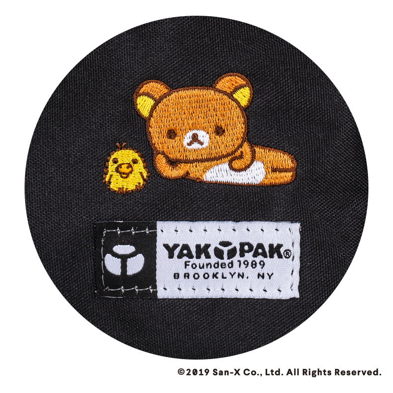 └キュートなリラックマの刺しゅうとYAK PAKの公式タグのワンポイントデザイン。