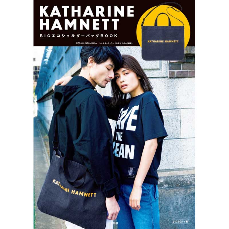 ロンドン生まれのKATHARINE HAMNETTから初のブランドブックが登場。ブランドアイテムは幅約50cmのメガサイズ!ネイビーにマンダリンオレンジの色使いがおしゃれなBIGエコショルダーバッグです。KATHARINE HAMNETTのスタイリッシュなロゴがシンプルに効いたユニセックスなデザインで、シーンを問わず活躍すること間違いなしです!