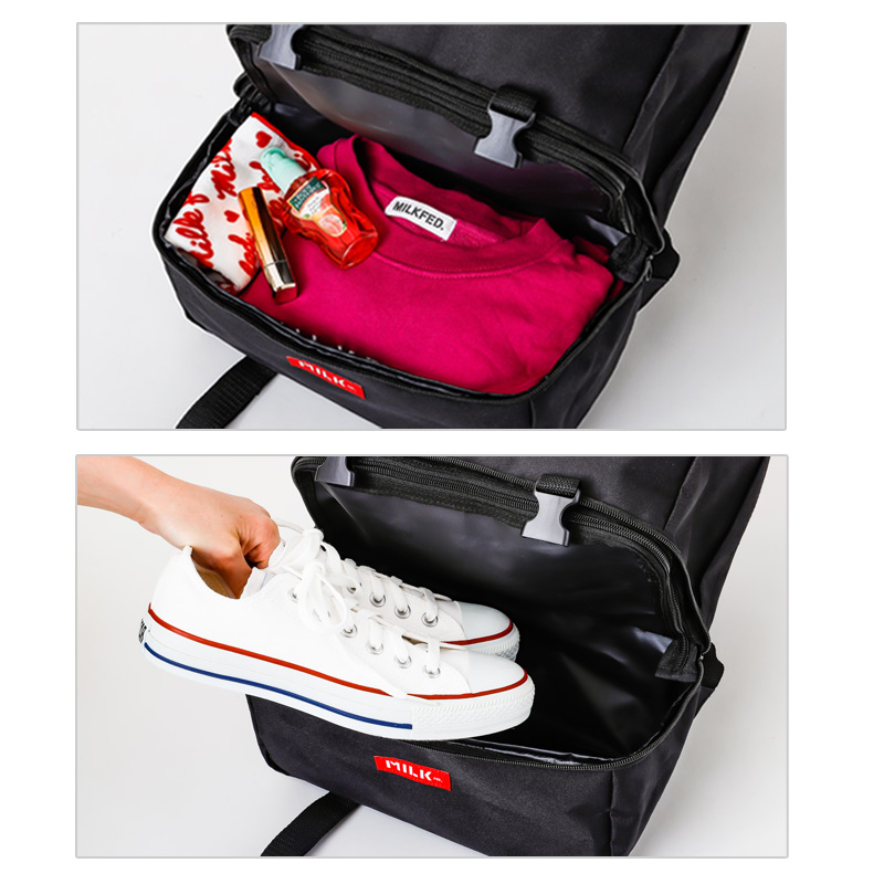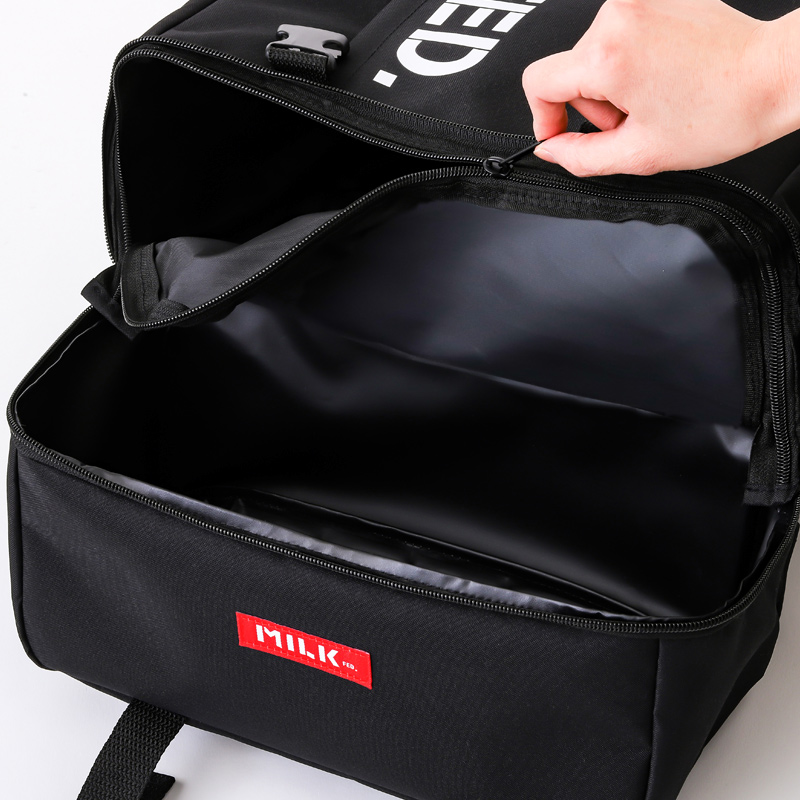 お弁当スペースにしても、着替えを入れても◎。 さらに上部のメイン収納と、下部の底ポケットの仕切りは開閉可能!