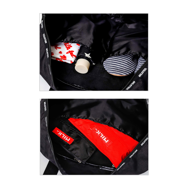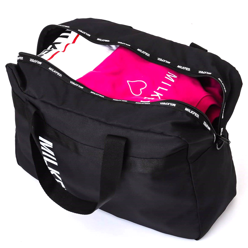 ありそうでなかった! MILKFED.のボストンバッグがついに登場! 丈夫なのにやわらかく、軽い素材。さらに、約35Lと大容量! ジムはもちろん、旅行や合宿にもぴったり! キャスタースリーブや大小4つのポケットなど、機能性も抜群なボストンバッグができました。