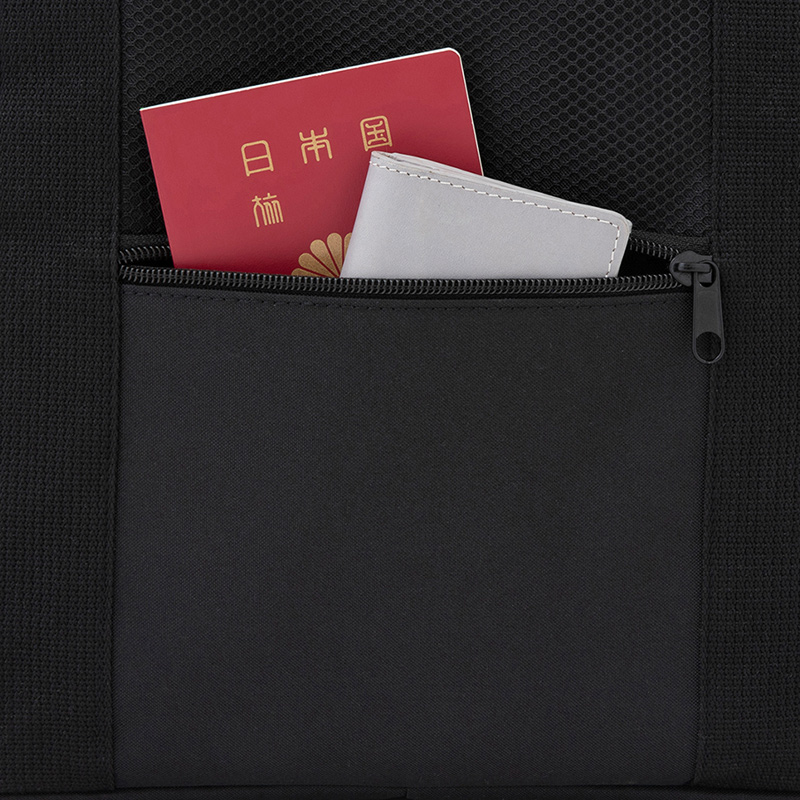 フロントポケットはジップ付き。