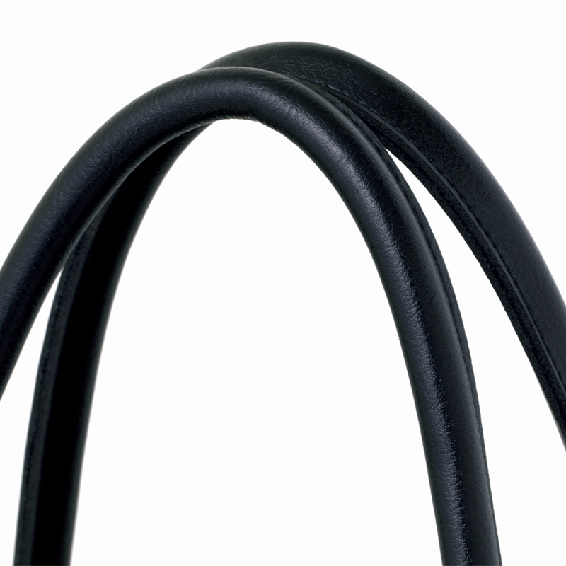 色はシックな黒で、持ち手はエコレザー仕様の