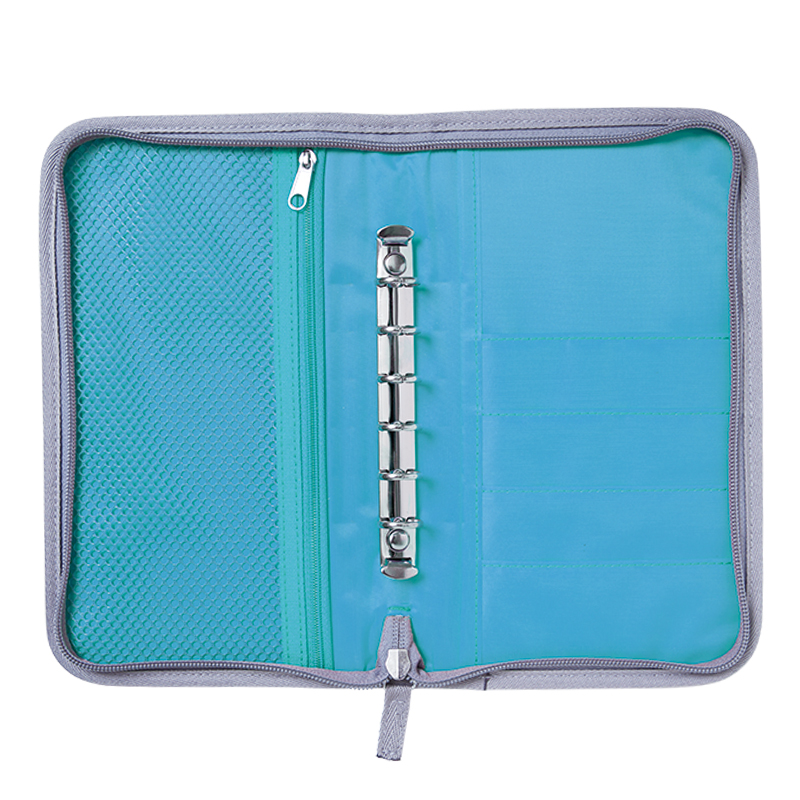 ②付属のクリアポケットのほか、市販のスケジュール帳やメモ帳のリフィルもつけられる6穴バインダー