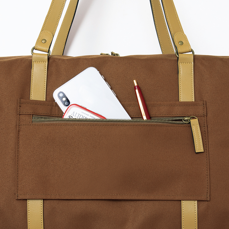 ファスナー付きの外ポケットは、スマートフォンなどを入れるのに便利