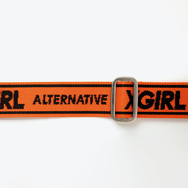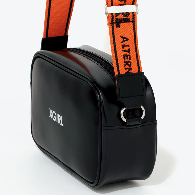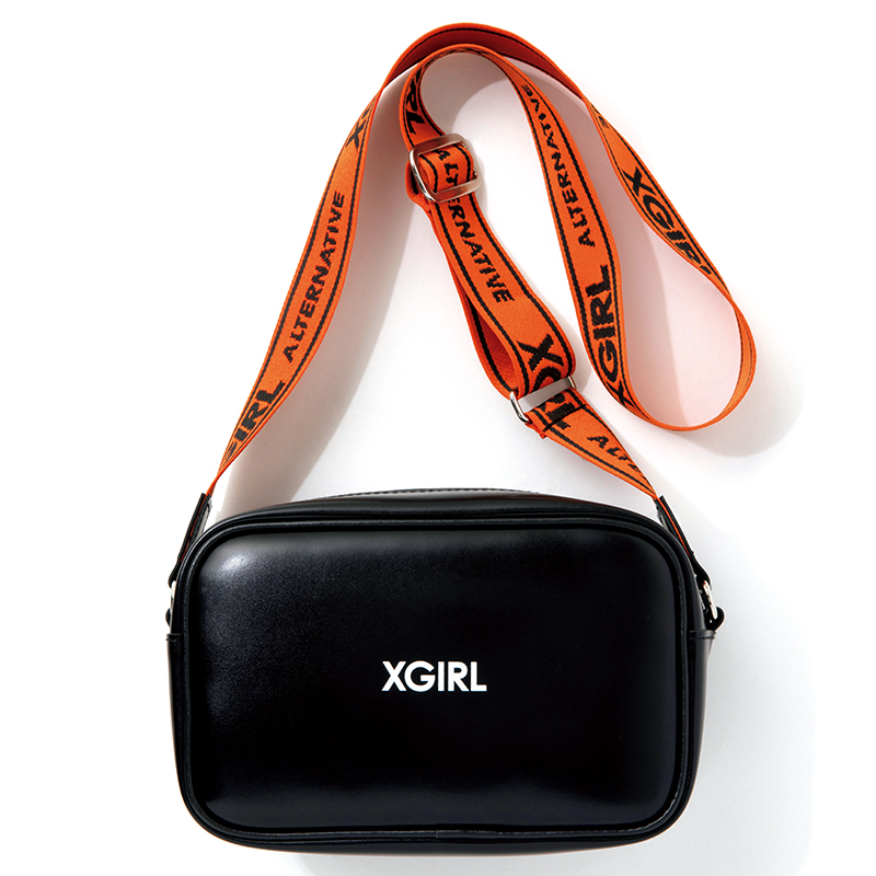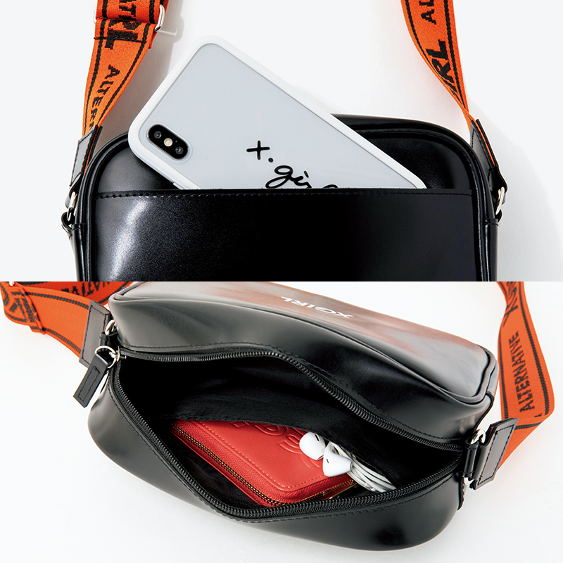 コーデの差し色になるオレンジのショルダーストラップ。