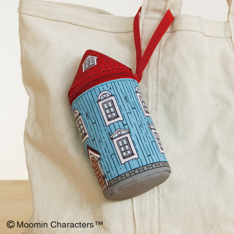 ムーミンハウスをかたどったポーチは、バッグを折りたたんで収納できるだけでなく、