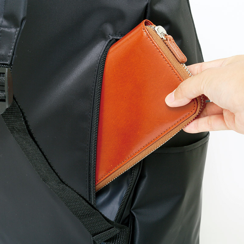 従来の便利な機能はそのままに、背面ポケットやグレーの裏地など、