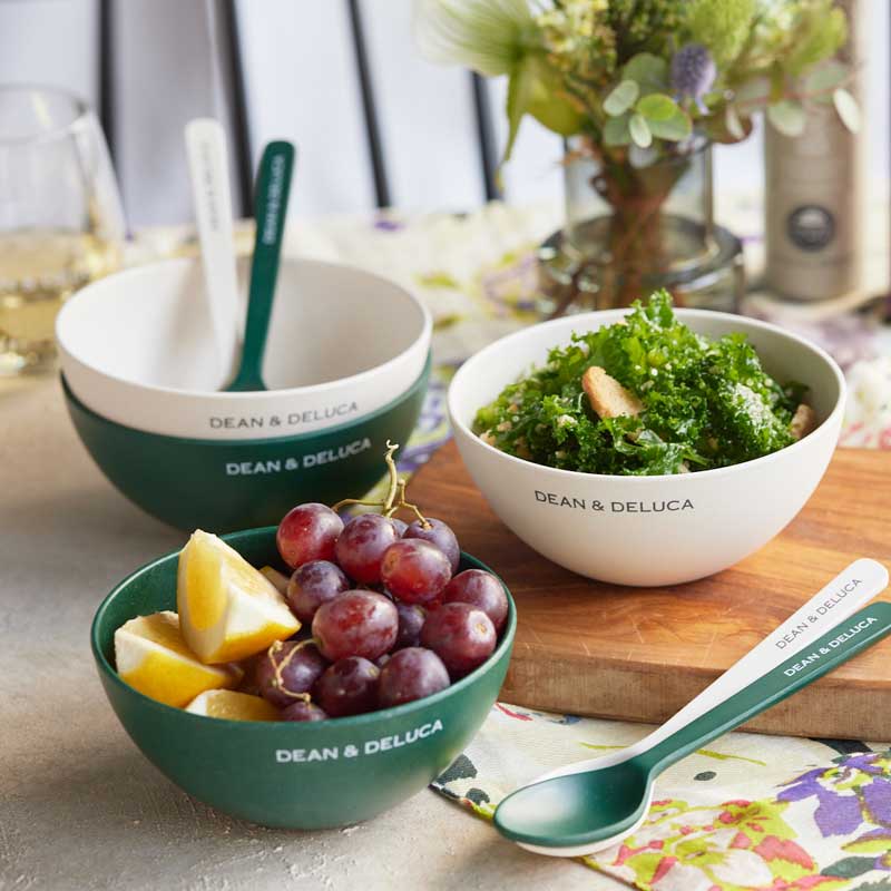 ボウルとスプーンは、それぞれ2個セットになっています。ボウルは、ひとり分のサラダやスープ、小さめのどんぶりとしてなど、便利に使えるサイズです。 マットな質感でも触るとつるつるしていて、口当たりがよく料理が映えます。