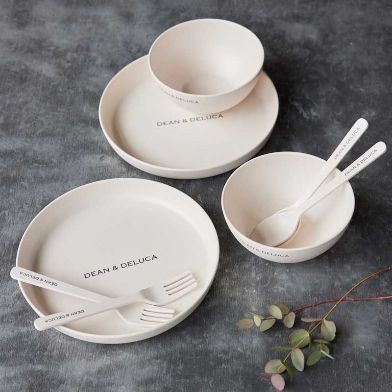 食器セットは環境にやさしいバンブーファイバー入りのメラミン素材。