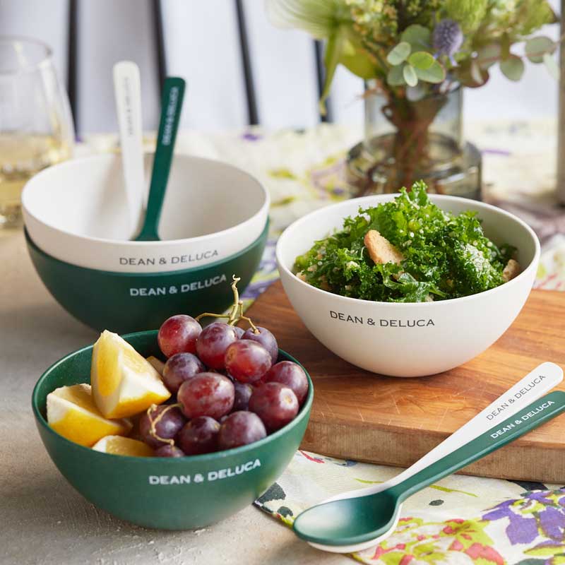 ボウルとスプーンは、それぞれ2個セットになっています。ボウルは、ひとり分のサラダやスープ、小さめのどんぶりとしてなど、便利に使えるサイズです。 マットな質感でも触るとつるつるしていて、口当たりがよく料理が映えます。
