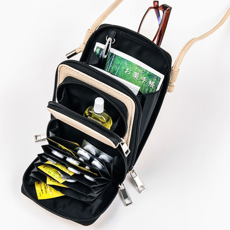 (4)2つの小物ポケット…お薬手帳も余裕で入る小物ポケットは、お札はもちろんハンカチやちょっとしたコスメも入り、これだけで目的に合わせたものをまとめて収納できます。