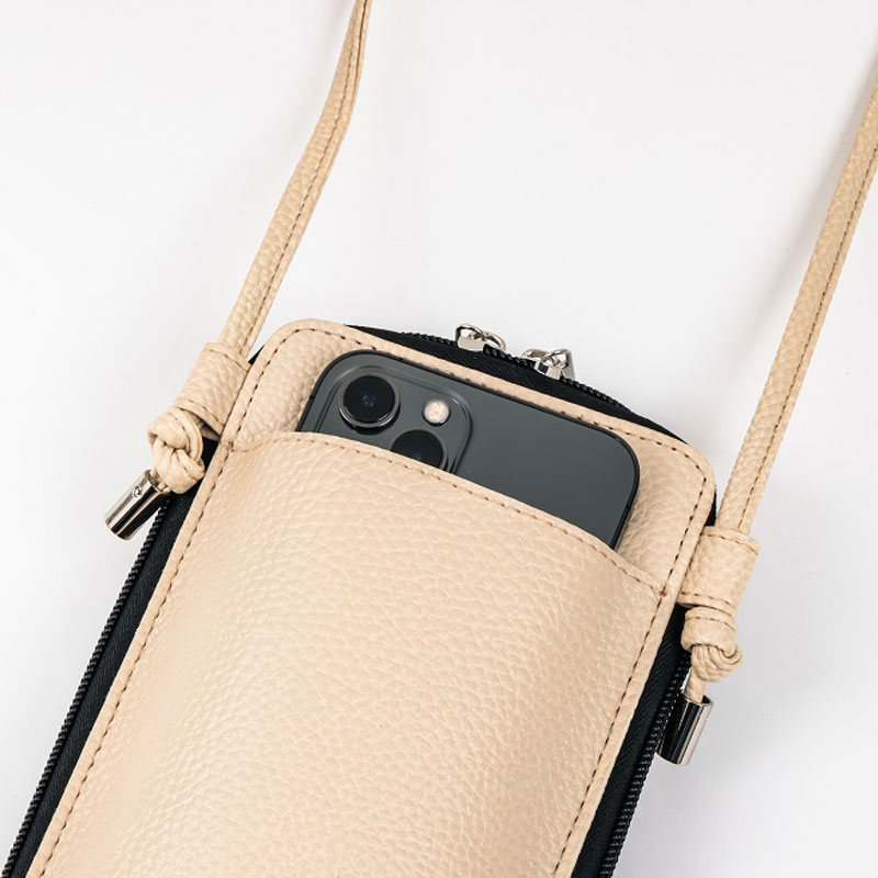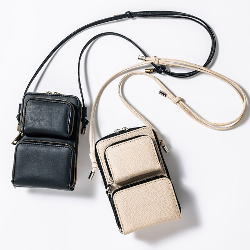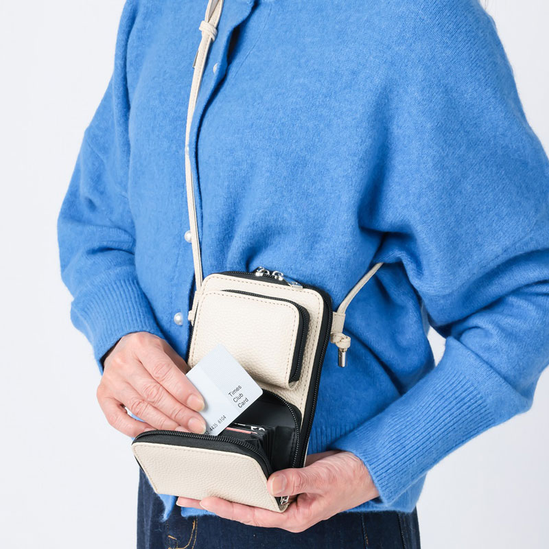 いつも手元に置きたいスマホをはじめ、バッグの中で迷子になりがちなお出かけの必需品が全部入ってさっと取り出せる機能にとことんこだわりました。