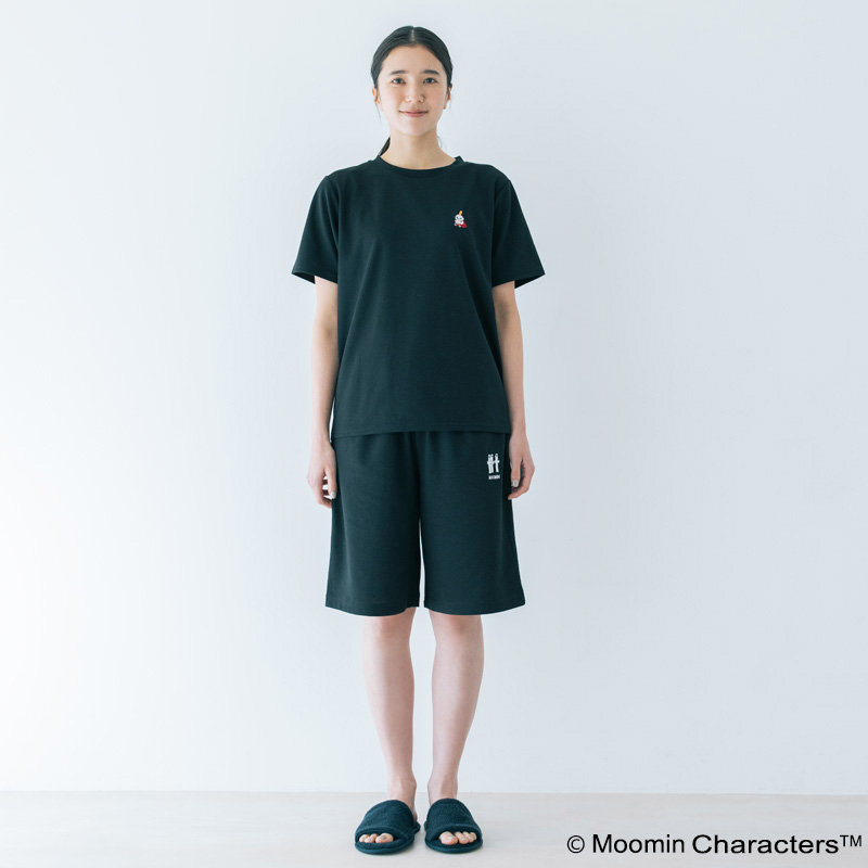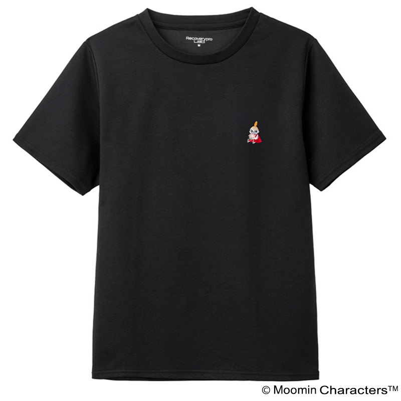 上下セット/Mサイズ(ブラック)MOOMIN リトルミイ・ニョロニョロの刺繍入り 疲労回復ウェア 半袖クルーネック・ショートパンツ [一般医療機器] Recoverypro Lab. プレミアム