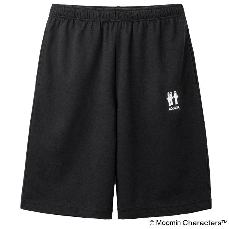 シックなブラックの上下セットでトップスの胸元にはリトルミイ、ボトムスにはニョロニョロと「MOOMIN」のロゴを刺繍。
