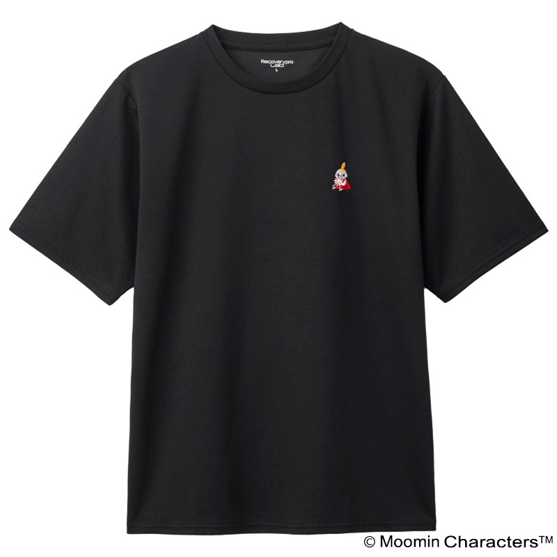 上下セット/Lサイズ(ブラック)MOOMIN リトルミイ・ニョロニョロの刺繍入り 疲労回復ウェア 半袖クルーネック・ショートパンツ [一般医療機器] Recoverypro Lab. プレミアム