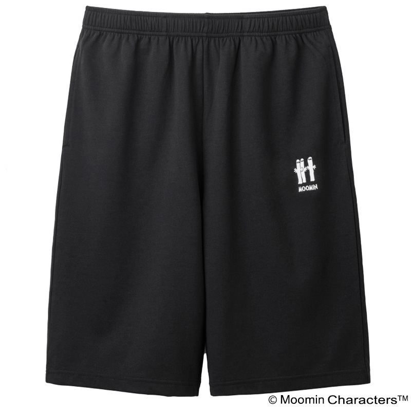 シックなブラックの上下セットでトップスの胸元にはリトルミイ、ボトムスにはニョロニョロと「MOOMIN」のロゴを刺繍。
