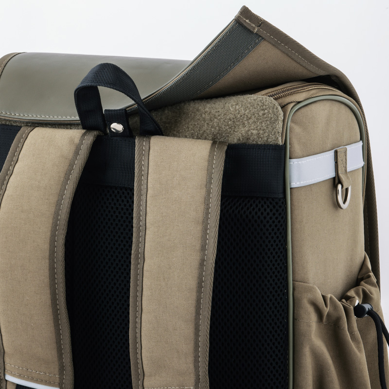 定番のブラックに加え、ベーシックすぎない“カーキ”の効かせカラーをセレクト。子どもっぽくなりすぎないよう、絶妙なカーキの色味をセレクト。通学スタイルにもおしゃれ心を忘れないデザインです。